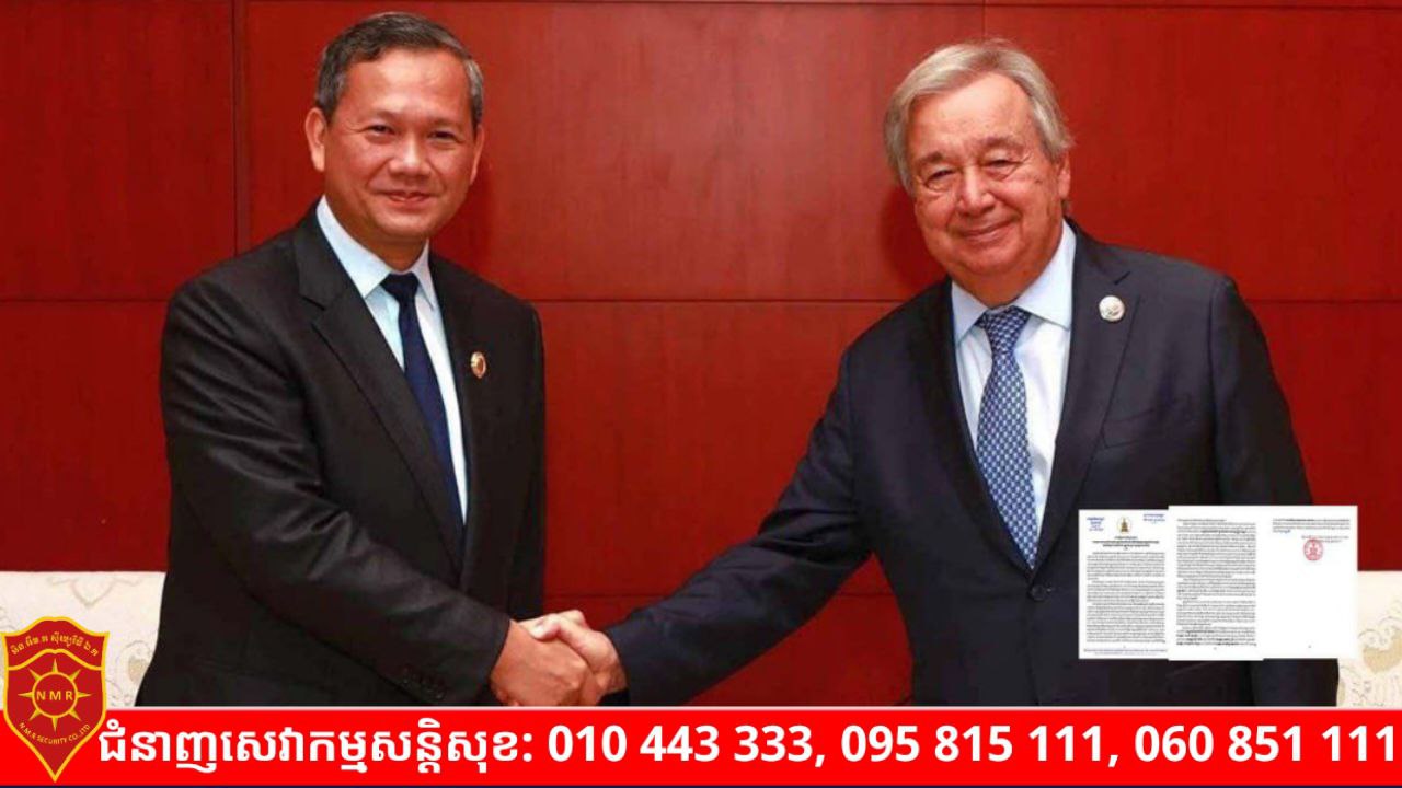 ភ្នំពេញ៖ សម្តេចមហាបវរធិបតី ហ៊ុន ម៉ាណែត នាយករដ្ឋមន្ត្រីនៃព្រះរាជាណាចក្រកម្ពុជា តាមរយៈសារលិខិតផ្ញើជូនឯកឧត្តម António Guterres អគ្គលេខាធិការអង្គការសហប្រជាជាតិ នៅថ្ងៃទី១៧ ខែកញ្ញា ឆ្នាំ២០២៥ បានគូសបញ្ជាក់ថា ស្ថានការណ៍ថ្មីៗ នៅតាមព្រំដែនកម្ពុជា-ថៃ បង្កការគំរាមកំហែងធ្ងន់ធ្ងរដល់សន្តិភាព និងស្ថិរភាព មិនត្រឹមតែសម្រាប់ប្រជាជាតិទាំងពីរប៉ុណ្ណោះទេថែមទាំងប៉ះពាល់ដល់តំបន់ទាំងមូលផងដែរ។