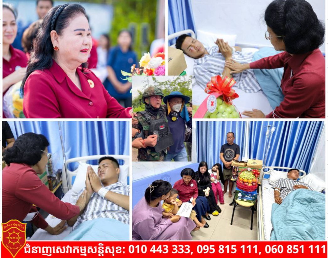 សម្តេចកិត្តិព្រឹទ្ធបណ្ឌិត ប៊ុន រ៉ានី ហ៊ុនសែន ប្រធានកាកបាទក្រហមកម្ពុជា នៅថ្ងៃទី១៨ ខែកញ្ញា ឆ្នាំ២០២៥នេះ បានចាត់ឱ្យលោកជំទាវ ពុំ ចន្ទីនី អគ្គលេខាធិការ កាកបាទក្រហមកម្ពុជា និងសហការី អញ្ជើញនាំយកសម្ភារ-ភេសជ្ជៈ រួមជាមួយផ្លែឈើ១កន្ត្រក ព្រមទាំងថវិកាមួយចំនួន ចុះសួរសុខទុក្ខពលបាលឯក ម៉ន ភក្រ្តា ដែលបានទទួលរងរបួសភ្នែកធ្ងន់ធ្ងរក្នុងពេលបំពេញភារកិច្ចនៅភូមិព្រៃចាន់ ឃុំអូរបីជាន់ ស្រុកអូរជ្រៅ ខេត្តបន្ទាយមានជ័យ កាលពីថ្ងៃទី១៧ ម្សិលម៉ិញនេះ ហើយបច្ចុប្បន្នកំពុងសម្រាកព្យាបាលនៅមន្ទីរពេទ្យព្រះអង្គឌួង រាជធានីភ្នំពេញ។