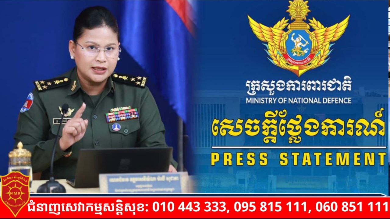 ក្នុងន័យនេះ ក្រសួងការពារជាតិ នៃព្រះរាជាណាចក្រកម្ពុជា សូមស្នើភាគីថៃប្រកាន់ខ្ជាប់នូវគោលការណ៍ ដែលភាគីកម្ពុជា និងភាគីថៃបានឯកភាពគ្នា ដូចមានចែងនៅក្នុងកំណត់ហេតុរួមនៃកិច្ចប្រជុំ គណៈកម្មាធិការព្រំដែនទូទៅ កម្ពុជា-ថៃ (GBC) និងកិច្ចប្រជុំព្រំដែនថ្នាក់យោធភូមិភាគ កម្ពុជា-ថៃ (RBC)ទាំងអស់ រួមទាំងស្មារតីនៃកិច្ចប្រជុំពិសេសលើកទី១ របស់គណៈកម្មាធិការព្រំដែនទូទៅ កម្ពុជា-ថៃ (GBC) កាលពីថ្ងៃទី១០ ខែកញ្ញា ឆ្នាំ២០២៥ កន្លងទៅថ្មីៗនេះឱ្យបានម៉ឺងម៉ាត់ និងខ្ជាប់ខ្ជួន ដែលបានបញ្ជាក់ថាភាគីទាំងពីរ ត្រូវចៀសវាងការចែកចាយព័ត៌មានមិនពិត ឬព័ត៌មានក្លែងក្លាយដើម្បី កាត់បន្ថយភាពតានតឹង កាត់បន្ថយសាធារណមតិអវិជ្ជមាន និងលើកកម្ពស់បរិយាកាសអំណោយ ផល សម្រាប់កិច្ចសន្ទនាដោយសន្តិវិធីដែលជាចំណែកមួយ ក្នុងការអនុវត្តបទឈប់បាញ់ឱ្យបានពេញលេញ មានប្រសិទ្ធភាព និងការត្រឡប់មកប្រក្រតីភាពឡើងវិញ។