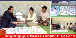 តំណាងមាតាបិតាកូនភ្លោះ បានគោរពថ្លែងអំណរគុណយ៉ាងជ្រាលជ្រៅបំផុត ជូនសម្តេចតេជោ និងសម្តេចកិត្តិព្រឹទ្ធបណ្ឌិត សម្តេចមហាបវរធិបតី និងលោកជំទាវបណ្ឌិត ដែលជានិច្ចកាលចាត់ទុកប្រជាពលរដ្ឋទីទល់ក្រងាយរងគ្រោះ គឺជាការលំបាកផ្ទាល់របស់សម្តេច ពោលគឺពេលនេះ សម្តេចបានចាត់ឱ្យតំណាងរបស់សម្តេចបាននាំយកថវិកា និងសម្ភារៈដ៏មានតម្លៃបំផុតនេះ មកចែកជូនផ្ទាល់ដៃដល់គ្រួសាររបស់ខ្លួន ដែលសម្រាលបានកូនភ្លោះ៣នាក់ ដើម្បីជួយសំរាលការលំបាក់ក្នុងការចិញ្ចឹមបីបាច់កូន ឱ្យមានជីវិតរស់នៅ និងមានអនាគតល្អដូចពលរដ្ឋដទៃទៀតក្នុងសង្គម៕